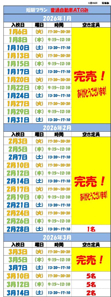 冬の短期プランについて