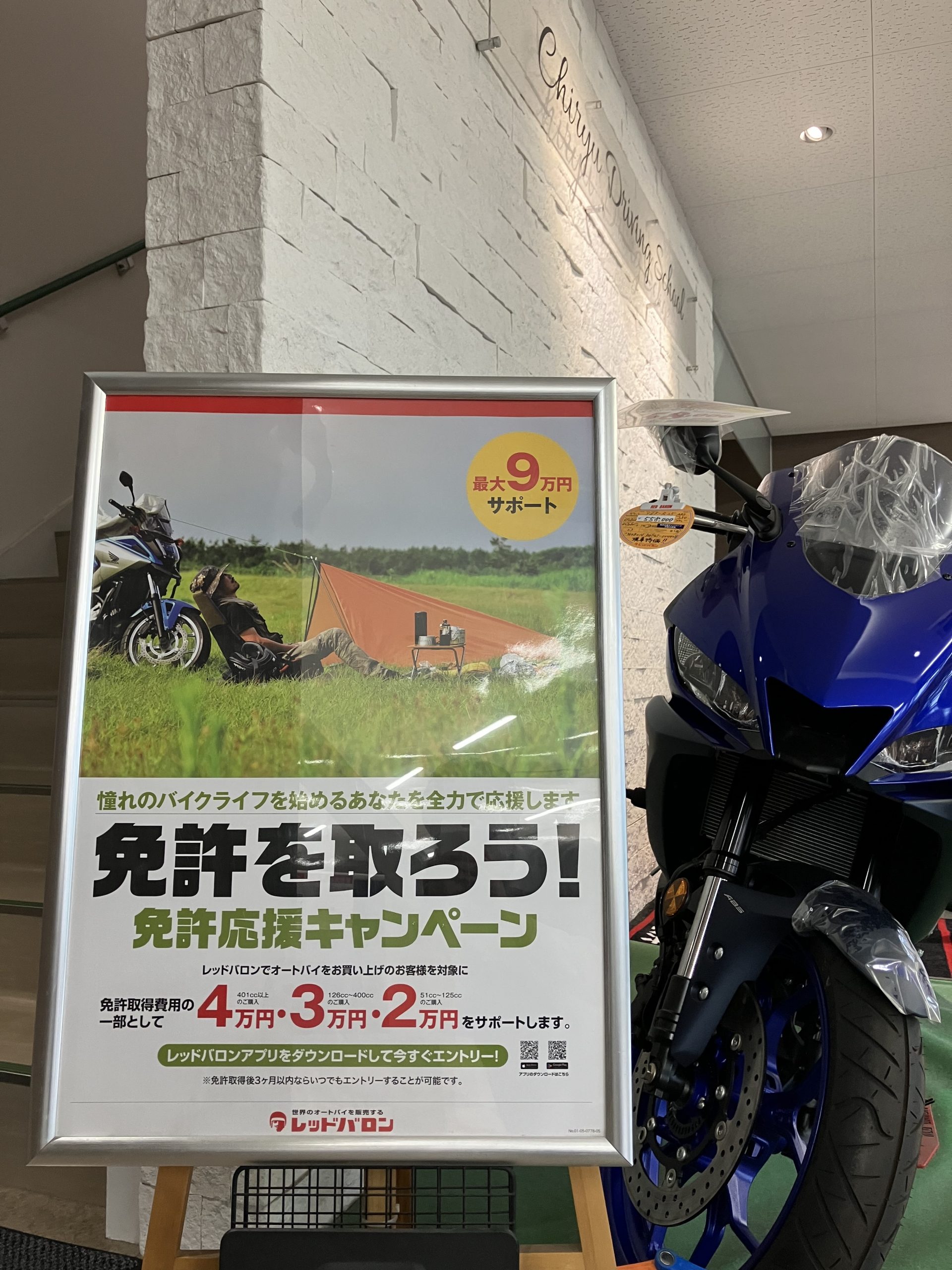 ブログ 2025.06.28 エントランス展示! みなさんこんにちは! 先日、レッドバロン知立様より、 ヤマハ YZF-R25が展示されました! こちらのバイクは、軽量コンパクトで シートは足つき性が良く、乗り降り、扱い易いので 女性にもおススメのバイクです!! ご来校の際には 是非一度ご覧になってください!!