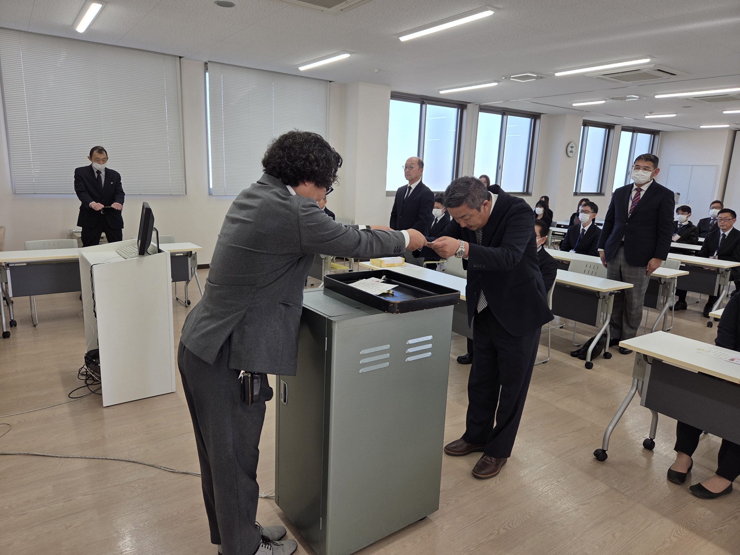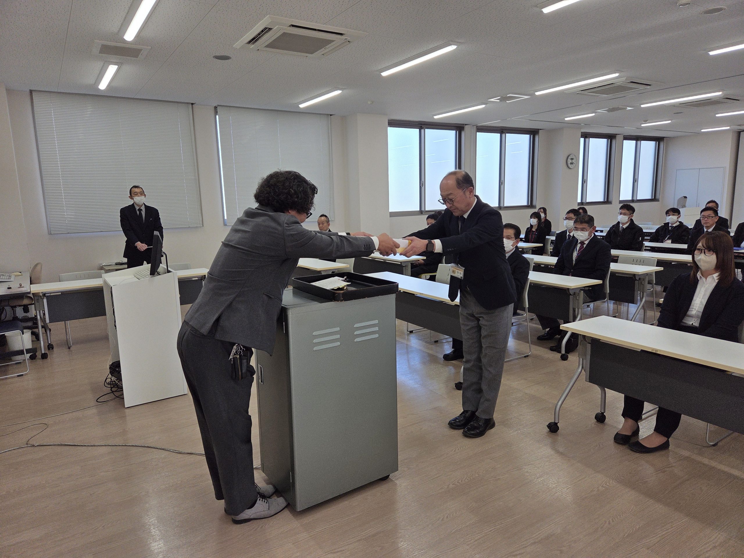 社長から表彰状、記念品、金一封が授与されました。